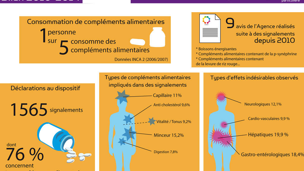 Depuis 2010, l’Agence nationale de sécurité sanitaire de l’alimentation, de l’environnement et du travail (Anses) a recensé 1565 signalements d’effets indésirables consécutifs à la consommation de compléments alimentaires, d’aliments enrichis ou de boissons énergisantes. Ce chiffre a été annoncé hier matin par l’Anses dans le cadre d’une présentation de son bilan de « nutrivigilance » (cette présentation peut être consultée dans son intégralité, ici ; en version infographie ici).