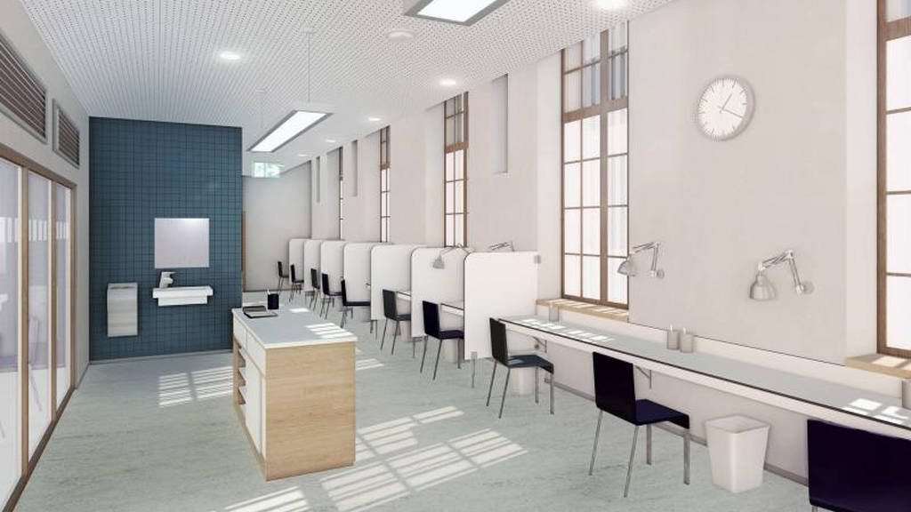 Dans la salle de consommation à proprement parler, il y a 13 postes de consommation par voie intraveineuse dont un, sous la forme d’un petit box un peu plus isolé, plus calme, qui est utilisé pour des gens qui sont en difficulté et prennent trop de risques dans leur mode de consommation. Il y a également une salle d’inhalation pour les gens qui passent de l’injection à l’inhalation. Cela nous permet de guider les utilisateurs vers un mode de consommation à moindre risque.
