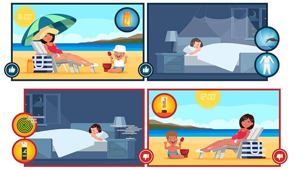 De fait, il est préférable, dans ces régions, pour les femmes enceintes et les jeunes enfants, de privilégier des solutions de protection sans répulsifs chimiques (sprays, diffuseurs, tortillons), car ces derniers contiennent des produits chimiques toxiques comme le DEET (N,N-diéthyl-3-méthylbenzamide) ou le IR3535 (N-acétyl-N-butyl-βalaninate d’éthyle).